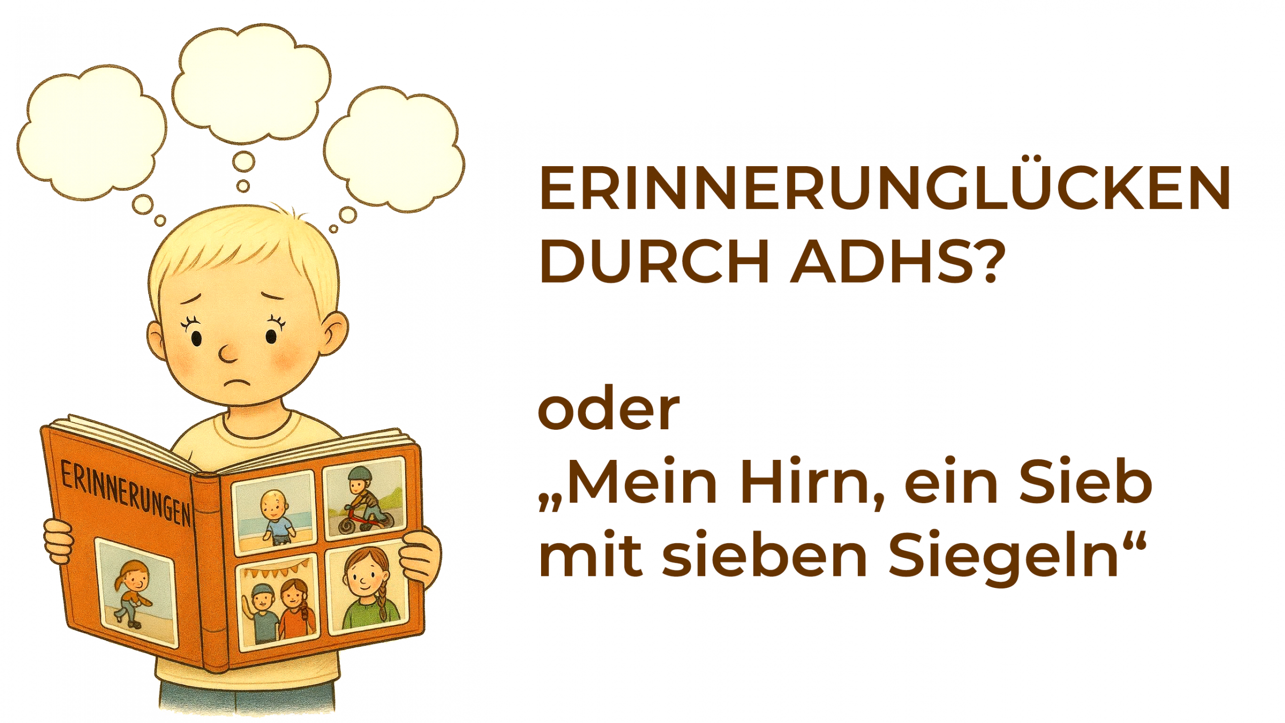 (Hinweis: Natürlich bin ich kein Wissenschaftler, und alles, was ich mir hier zusammentippe, ist bloß das Zusammenspiel von Google-Recherche und eigenen Schlussfolgerungen. Auch würde ich mir nie anmaßen, allgemeingültige Weisheiten in die Welt zu posaunen. Also nicht jeder, der ADHS hat, muss zwangsläufig unter Erinnerungslücken leiden. Genauso wenig wie im Umkehlschluss Erinnerungslücken unbedingt ein Anzeichen von ADHS sind.